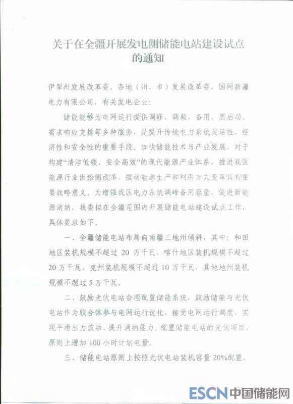 《通知》要求,全疆儲能電站布局要向和田、喀什與克州三地州傾斜,試點儲能電站裝機總計不超過55萬千瓦。