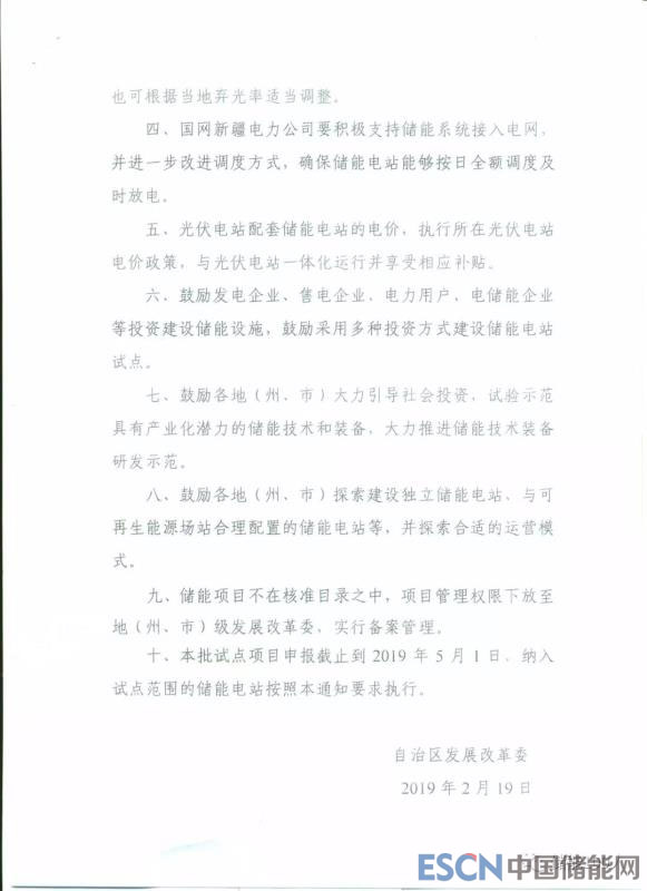 本批發(fā)電側(cè)儲能電站試點項目申報截止為2019年5月1日。