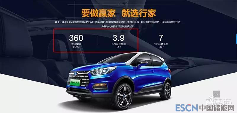 再說說在2019年1月份以1萬+的銷量登頂新能源車銷冠位置的比亞迪元EV,其官網(wǎng)首頁赫然寫著“純電續(xù)航360公里”的標語,但卻在配置表中表明這是等速法續(xù)航。