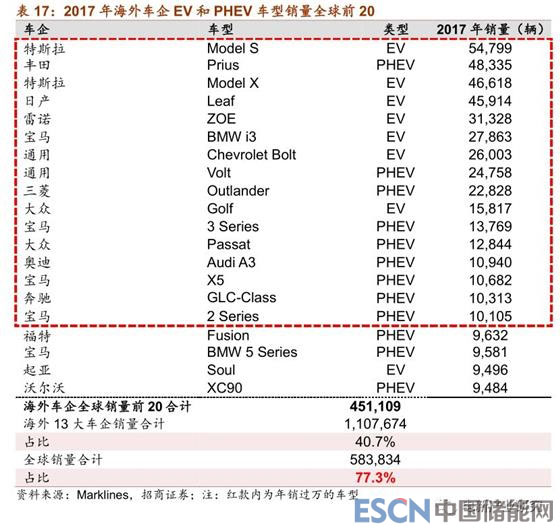 2018年特斯拉、雷諾-日產(chǎn)-三菱聯(lián)盟和寶馬兩家占據(jù)電動車(EV+PHEV)銷量的前兩位,達到10萬臺水平,通用、大眾、現(xiàn)代起亞分列3-6位,銷量在6萬臺以上(通用在8萬臺以上)。2015-2018年行業(yè)格局較為穩(wěn)固,銷量前5名基本沒有變化。