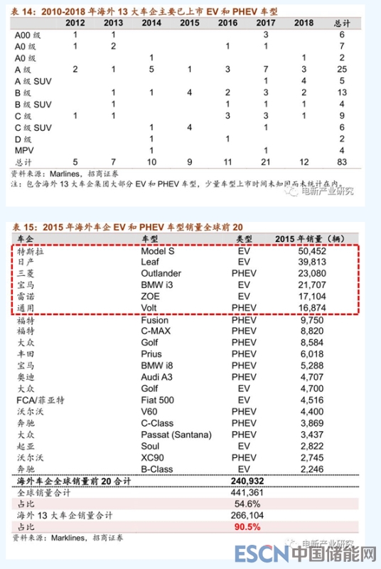 傳統(tǒng)車企的新車型將在2020-2021年密集上市。根據(jù)各車企未來新能源汽車戰(zhàn)略規(guī)劃,海外13大車企集團在2018-2020/2021年期間,將推出的新能源車型數(shù)量將大于82款,年均21款以上。