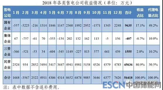 從各類售電公司收益情況來看,國有售電公司全年收益0.96億元,占全年總收益17.1%;民營售電公司全年收益5.64億元,占全年總收益80.9%。