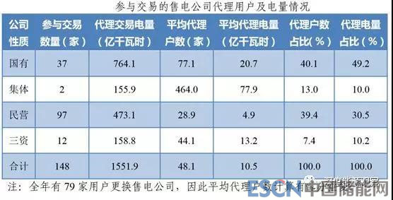 從代理電量市場份額方面來看,國有售電公司全年代理交易電量764.1億千瓦時,代理電量占比49.2%;民營售電公司全年代理交易電量473.1億千瓦時,代理電量占比30.5%。