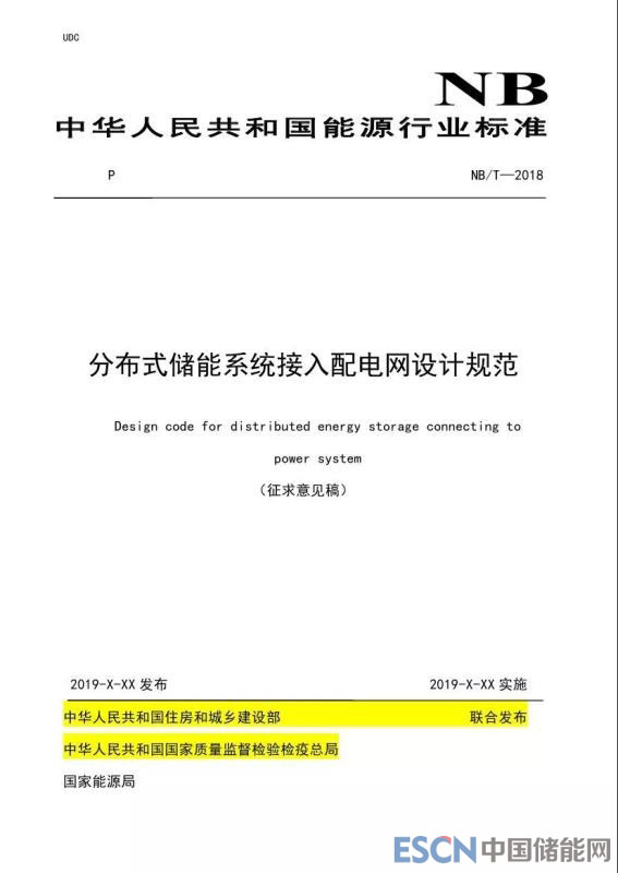 中國(guó)儲(chǔ)能網(wǎng)訊:近日,能源行業(yè)標(biāo)準(zhǔn)《分布式儲(chǔ)能系統(tǒng)接入配電網(wǎng)設(shè)計(jì)規(guī)范》征求意見(jiàn)稿發(fā)布。