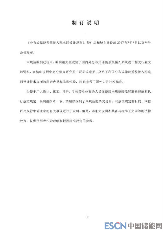 本規(guī)范適用于通過(guò)10kV及以下電壓等級(jí)接入公共配電網(wǎng)的新建、改建和擴(kuò)建分布式儲(chǔ)能項(xiàng)目。