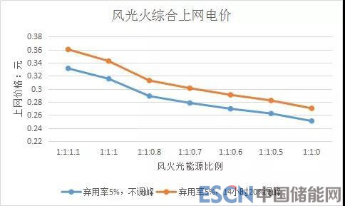 在5%棄電率下風(fēng)光火1:1:0.5配置的上網(wǎng)電價分析