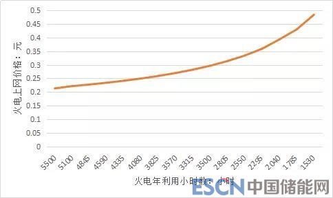 圖7 :火電機組上網(wǎng)電價與年利用小時數(shù)關(guān)系