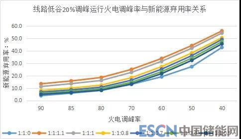圖4:線路低谷20%調(diào)峰運行火電調(diào)峰率與新能源棄用率關(guān)系