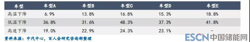 典型車(chē)型不同工況下的續(xù)駛里程衰減情況
