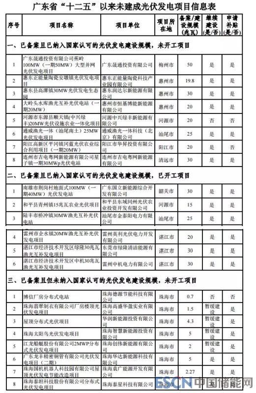 廣東省發(fā)改委表示,按照《國家能源局綜合司關(guān)于梳理“十二五”以來風(fēng)電、光伏發(fā)電項目信息的通知》要求,我局組織各地對“十二五”以來未建成的風(fēng)電、光伏項目信息進(jìn)行了梳理匯總?,F(xiàn)按通知要求對項目情況進(jìn)行公示,其中:已核準(zhǔn)在兩年內(nèi)未開工建設(shè)且未申請辦理延期的項目,按規(guī)定作廢;納入“十二五”、“十三五”時期年度建設(shè)方案但未完成核準(zhǔn)的風(fēng)電項目,按相關(guān)規(guī)定廢止核準(zhǔn)計劃。