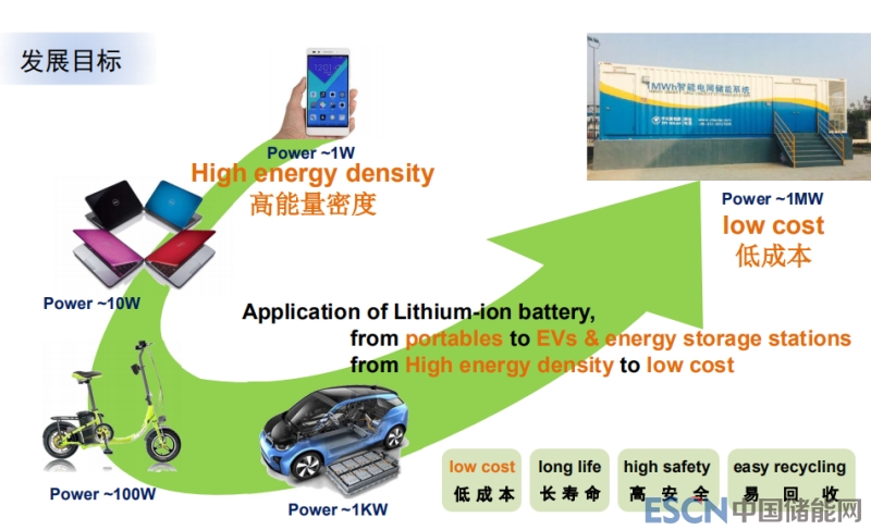因此我們說(shuō)儲(chǔ)能電池的發(fā)展,已經(jīng)從當(dāng)初對(duì)消費(fèi)類電池的高能量密度的首要要求,逐步轉(zhuǎn)變?yōu)閷?duì)低成本的核心要求。電池在手機(jī)中的使用是剛需,手機(jī)離不開(kāi)電池,因此電池便宜也好,貴也好,必須要用電池。但是,儲(chǔ)能電池如果太貴的話電力系統(tǒng)可以不用,甚至可以用非儲(chǔ)能的手段解決一些儲(chǔ)能面臨的問(wèn)題。所以“低成本”成為我們儲(chǔ)能電池發(fā)展的首要目標(biāo)。