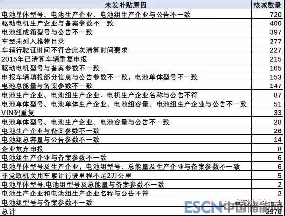 目前看影響補(bǔ)貼主要因素是產(chǎn)品一致性問題。電池單體型號(hào)、電池生產(chǎn)企業(yè)、電池組生產(chǎn)企業(yè)與公告不一致是主要的問題,單項(xiàng)的和組合的電池問題都比較多。