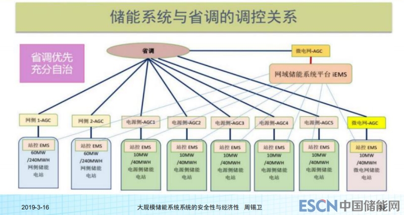 大規(guī)模示范項目,這個項目目前情況5月底的時候可能會有第一個站單體60兆瓦、240兆瓦時的,會整個調試完成。大概情況有八個子系統(tǒng),有兩個比較大的,都是單體60兆瓦,240兆瓦時,這是整體控制系統(tǒng)的架構。