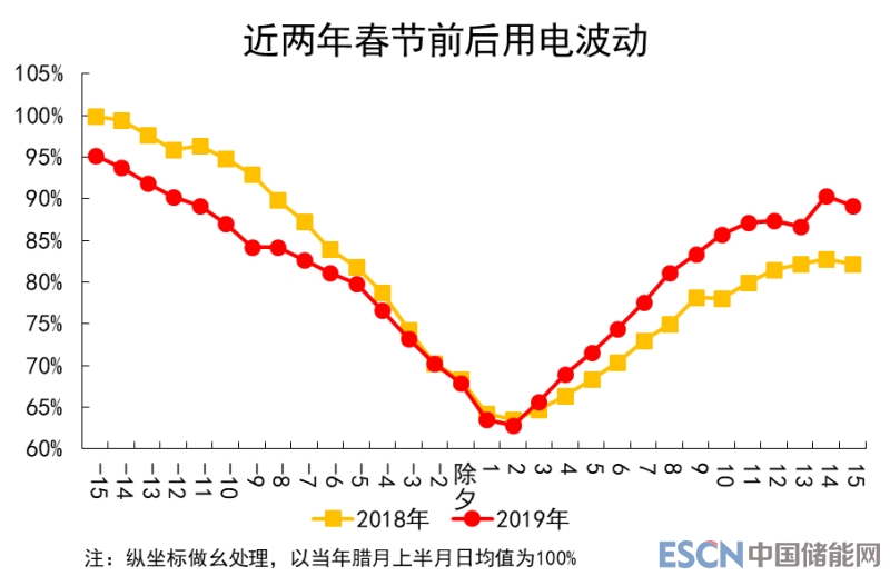 一是下降有所提前。2019年春節(jié)前日發(fā)電量在臘月十五即降至臘月上半月平均值的約94%,大體較往年提前近一周,反映出國民經(jīng)濟(jì)運行穩(wěn)中有變、下行壓力較大,信心不足影響市場預(yù)期,部分工業(yè)生產(chǎn)停工較早。