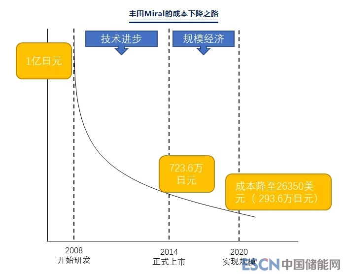 作為世界燃料電池車的領(lǐng)軍者,Miral成本已實(shí)現(xiàn)大幅下降。