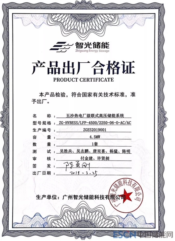 中國儲(chǔ)能網(wǎng)訊:2019年3月25日,廣州智光儲(chǔ)能科技有限公司在云埔園區(qū)隆重舉行”五沙熱電級聯(lián)式高壓儲(chǔ)能設(shè)備成功下線”儀式。佛山市順德五沙熱電有限公司設(shè)備部部長孫玉龍、廣東電科院能源技術(shù)有限責(zé)任公司風(fēng)電儲(chǔ)能事業(yè)部部長蘇偉、智光集團(tuán)副總裁兼智光儲(chǔ)能董事長姜新宇、智光研究院首席技術(shù)專家王衛(wèi)宏、智光儲(chǔ)能副總經(jīng)理付金建與受邀嘉賓及儲(chǔ)能項(xiàng)目團(tuán)隊(duì)的員工代表共同參加本次儲(chǔ)能設(shè)備的下線儀式。