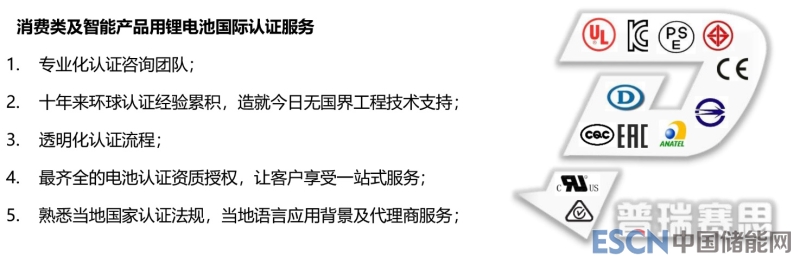 普瑞賽思專注于研究各國(guó)儲(chǔ)能電池標(biāo)準(zhǔn)的變化,并和國(guó)際知名機(jī)構(gòu)TüV萊茵、CSA、TüV南德、DEKRA、INTERTEK進(jìn)行的戰(zhàn)略合作并獲取目擊實(shí)驗(yàn)室資質(zhì),使測(cè)試本地化,外加我們高效的項(xiàng)目與測(cè)試團(tuán)隊(duì),能最大限度的為客戶贏得寶貴的時(shí)間,爭(zhēng)取更大的市場(chǎng)份額。認(rèn)證的服務(wù)范圍如下: