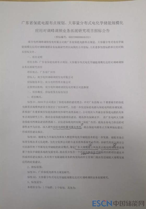 中國儲能網(wǎng)訊:據(jù)“儲能100人”了解,3月27日,南方電網(wǎng)調(diào)峰調(diào)頻公司就廣東省保底電源布點規(guī)劃、大容量分布式電化學儲能規(guī)?;瘧脤φ{(diào)峰調(diào)頻業(yè)務拓展研究項目向國內(nèi)公開招標。