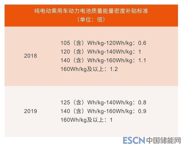 補(bǔ)貼金額“縮水”的同時(shí),電池組的能量密度要求也有所調(diào)整。動(dòng)力電池系統(tǒng)的質(zhì)量能量密度最低從2018年要求的105Wh/kg調(diào)整至125Wh/kg。補(bǔ)貼系數(shù)的分檔也更細(xì),125(含)-140Wh/kg的車型按0.8倍補(bǔ)貼,140(含)-160Wh/kg的車型按0.9倍補(bǔ)貼,160Wh/kg及以上的車型按1倍補(bǔ)貼,鼓勵(lì)動(dòng)力電池向高能量密度發(fā)展。
