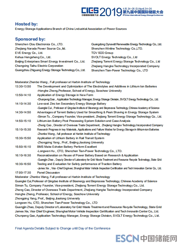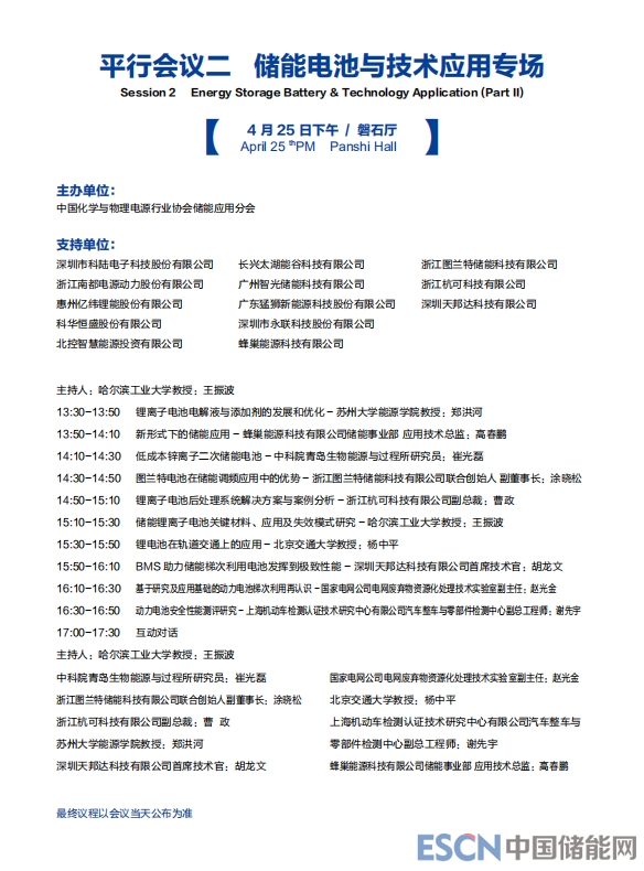 以下是《儲能電池與技術(shù)應(yīng)用專場二》議程內(nèi)容,其他各專場議程組委會將相繼發(fā)布,敬請關(guān)注!