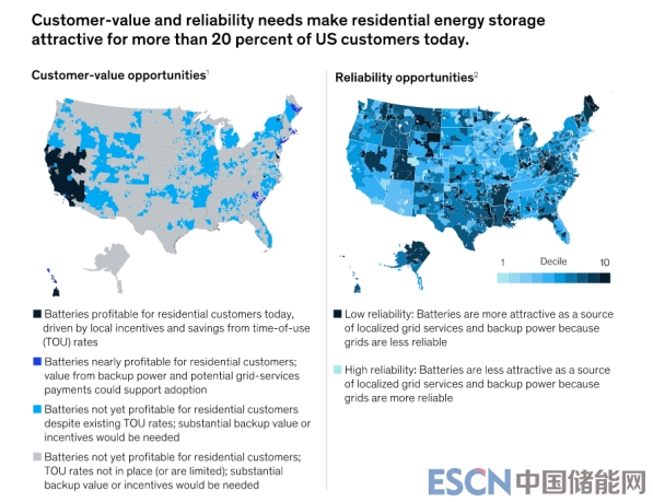 電網(wǎng)上的住宅儲(chǔ)能資源越多,電網(wǎng)整合就越有價(jià)值。因此,美國(guó)幾個(gè)州正在試驗(yàn)實(shí)施住宅儲(chǔ)能的電網(wǎng)整合計(jì)劃。馬薩諸塞州和紐約州正在制定“清潔峰值”政策,以促進(jìn)住宅儲(chǔ)能系統(tǒng)的部署,以滿足峰值需求。從2020年開(kāi)始,根據(jù)該州建筑節(jié)能標(biāo)準(zhǔn)第24條,加利福尼亞州將要求在該州新建住宅安裝太陽(yáng)能發(fā)電系統(tǒng),并鼓勵(lì)建筑商部署電池儲(chǔ)能系統(tǒng)。