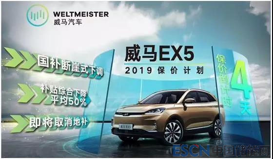 以北京地區(qū)用戶下定威馬EX5 400Lite探索版為例,2018年可享受國補5.5萬元,地補2.75萬元,綜合補貼8.25萬元,補貼后售價為12.48萬元。根據(jù)補貼新政,EX5可享受3.3萬元的國補,地補不變?nèi)詾?.75萬元,累計補貼較去年減少2.2萬元,意味著這部分差價要由主機廠來承擔(dān)。