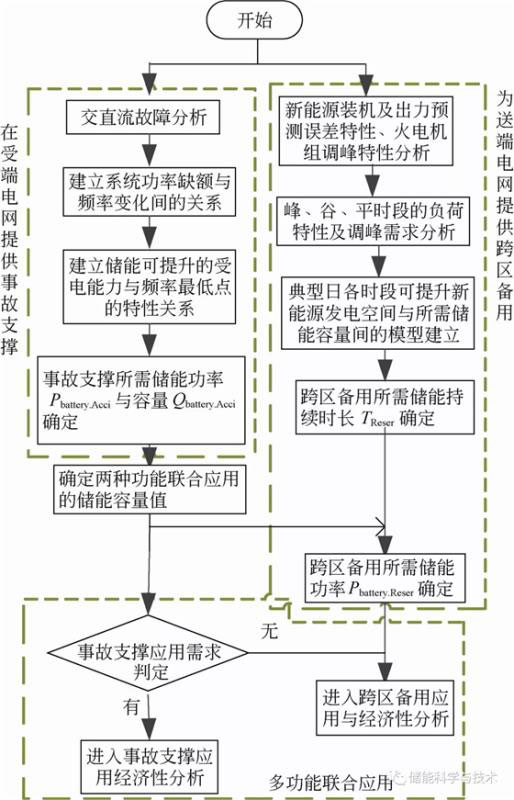本文探索了儲(chǔ)能提升特高壓輸電線輸送容量與輸送電量中新能源發(fā)電占比的兩種功能聯(lián)合應(yīng)用對(duì)儲(chǔ)能容量的需求與經(jīng)濟(jì)可行性,在提升電網(wǎng)緊缺靈活調(diào)節(jié)源利用率的同時(shí)將新能源發(fā)電的消納能力提升到最大。兩種功能聯(lián)合應(yīng)用中合理的容量需求決定應(yīng)用的可靠性實(shí)現(xiàn)及收益程度,影響著投資決策分析,針對(duì)這方面的研究也尚屬空白。因此,本文在探索單應(yīng)用功能中儲(chǔ)能容量需求與可提升新能源消納能力間特性關(guān)系的數(shù)學(xué)模型基礎(chǔ)上,結(jié)合兩種應(yīng)用功能的出現(xiàn)時(shí)序與緊急程度,提出多應(yīng)用功能目標(biāo)下的容量配置思路。