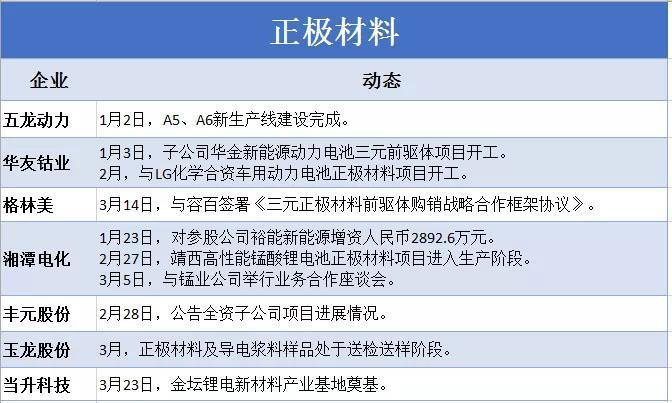 圖為2019年首季度國(guó)內(nèi)主要材料企業(yè)在正極材料方向的市場(chǎng)動(dòng)態(tài)