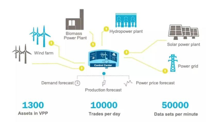 中國(guó)儲(chǔ)能網(wǎng)訊:在德國(guó),Statkraft公司與Energy Meteo Systems合作,創(chuàng)立了整合可再生能源發(fā)電廠構(gòu)成虛擬發(fā)電廠(a virtual power plant ,簡(jiǎn)稱VPP)。該虛擬電廠包括虛擬發(fā)電廠的系統(tǒng)中有1300多個(gè)風(fēng)電場(chǎng),還有100個(gè)太陽能、水力發(fā)電和生物能源生產(chǎn)商,總?cè)萘砍^10,000兆瓦,與10個(gè)核反應(yīng)堆大致相同,是德國(guó)最大的發(fā)電廠Neurath煤電廠的兩倍多。虛擬發(fā)電廠連接這些小型電力生產(chǎn)商出售可再生能源,并利用可再生能源工廠的全部靈活性,如同一家大型可靠的發(fā)電廠一樣。專家構(gòu)建智能算法,自動(dòng)銷售能源市場(chǎng)中可再生能源發(fā)電廠的生產(chǎn),以最大限度地降低客戶風(fēng)險(xiǎn),并通過利用虛擬電廠的靈活性獲得最大化的財(cái)務(wù)回報(bào)。虛擬電廠與氣象機(jī)構(gòu)合作,通過數(shù)字平臺(tái)每分鐘處理和分析超過5萬個(gè)相關(guān)數(shù)據(jù),可以有效應(yīng)對(duì)可再生能源發(fā)電的間歇性問題。虛擬電廠可以遠(yuǎn)程控制電網(wǎng)中的每個(gè)獨(dú)立電力生產(chǎn)商,每天超過10,000次交易。例如,如果市場(chǎng)價(jià)格突然下降或電網(wǎng)限制,我們可以降低發(fā)電廠的產(chǎn)出。這使工廠能夠?qū)崟r(shí)平衡電力生產(chǎn)。目前,這項(xiàng)創(chuàng)新已經(jīng)開始推廣,已經(jīng)有超過50種VPP解決方案。