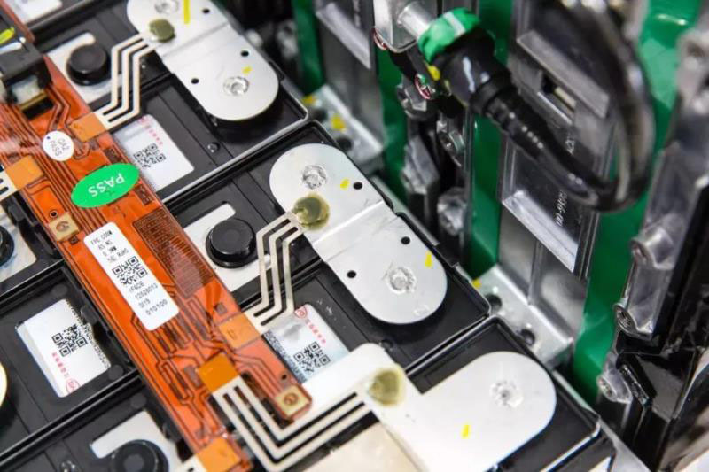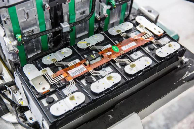 在信號連接的部分,比亞迪采用了柔性電路板,相對于傳統(tǒng)采樣線束的方案,集成度更高,也更輕薄。如果仔細觀察,會發(fā)現(xiàn)柔性電路板上有細絲狀的布線,我們稱之為采樣線熔斷線。它的作用是在碰撞時,可能會擠壓采樣線束造成短路,進而引起采樣線起火,這些細絲便會在短路時由于過流而發(fā)生熔斷,從而切斷短路回路,確保整個線束的安全和電池模塊的安全。