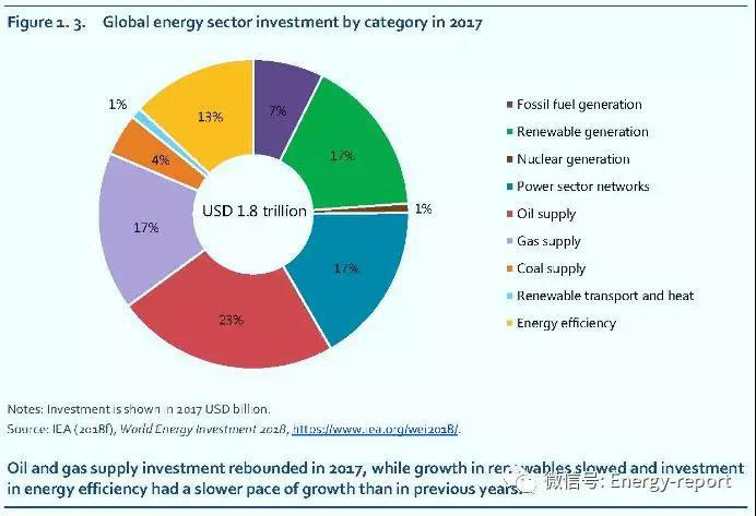 2017年全球能源部門投資,按類別分類