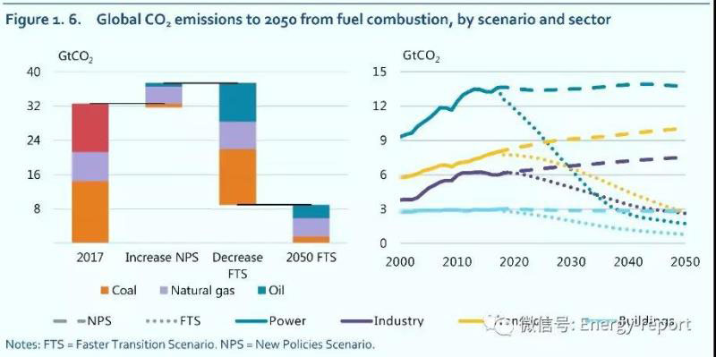 在這些部門中,在更快轉(zhuǎn)型情景中建筑部門二氧化碳的減排實現(xiàn)了突變。到2050年,建筑部門直接燃燒的燃料排放量下降了近75%。這一大幅下降是通過幾乎完全消除建筑部門中使用的煤炭,以及石油消費減少85%和天然氣需求總體下降50%而實現(xiàn)的。