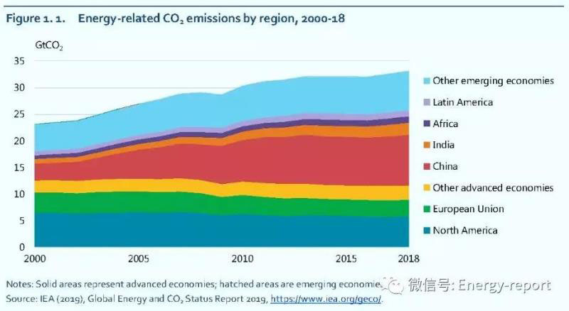 2000-2018年能源相關(guān)二氧化碳排放量按區(qū)域劃分