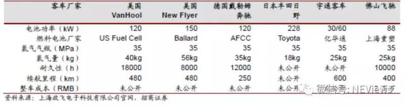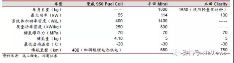 圖12 國內外燃料電池乘用車參數(shù)對比