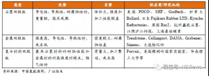 雙極板中,石墨雙極板最為成熟,金屬雙極板是未來方向。雙極板主要起到輸送和分配燃料、在電堆中隔離陽極陰極氣體的作用。雙極板占整個燃料電池重量的60%,成本的13%。主要功能有:連接單體模塊、分隔反應氣體、收集電流、散熱和排水等。其基體材料需具有強度高、致密性好、導電和導熱性能好等特點,材料的選擇將直接影響燃料電池的電性能和使用壽命。石墨雙極板目前最成熟,金屬與復合村料雙極板有較大發(fā)展空間。根據(jù)基體材料的不同,雙極板可以分為石墨雙極板、金屬雙極板和復合材料雙極板,其中石墨雙極板最早被開發(fā)使用,前技術已經(jīng)成熟,并已實現(xiàn)商業(yè)化大規(guī)模應用了。金屬雙極板是替代石墨雙極板的最使選擇,表面改性的多涂層結構金屬雙極板具備較大的發(fā)展空間。金屬雙極板的機械性能、加工性能、導電性等都十分優(yōu)異,易于批量化生產降低成本。