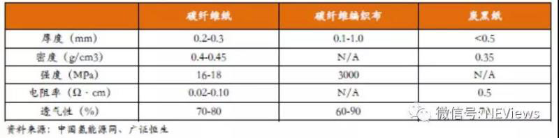氣體擴散層GDL是最容易實現(xiàn)降本的部分,未來規(guī)模化生產是發(fā)展的重點。GDL位于流場和催化層之間,其作用是支撐催化層、穩(wěn)定電極結構,并具有質/熱/電的傳遞功能。通常GDL由支撐層(憎水處理過的多孔碳紙或碳布)和微孔層組成(電炭黑和憎水劑構成)。目前主要的氣體擴散層有三種:碳纖維紙、碳纖維布和炭黑紙。
