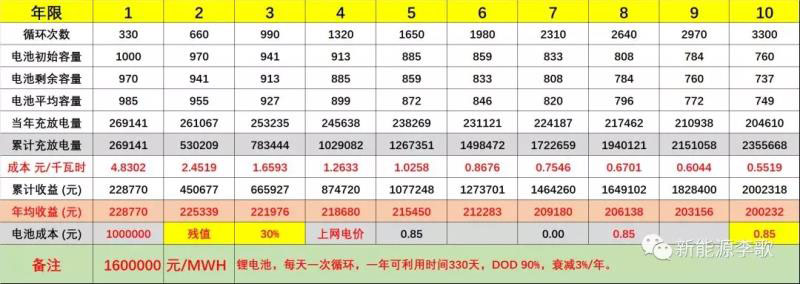 b.剩余容量80%,循環(huán)次數(shù)3800次左右,即4.2年,110萬元;