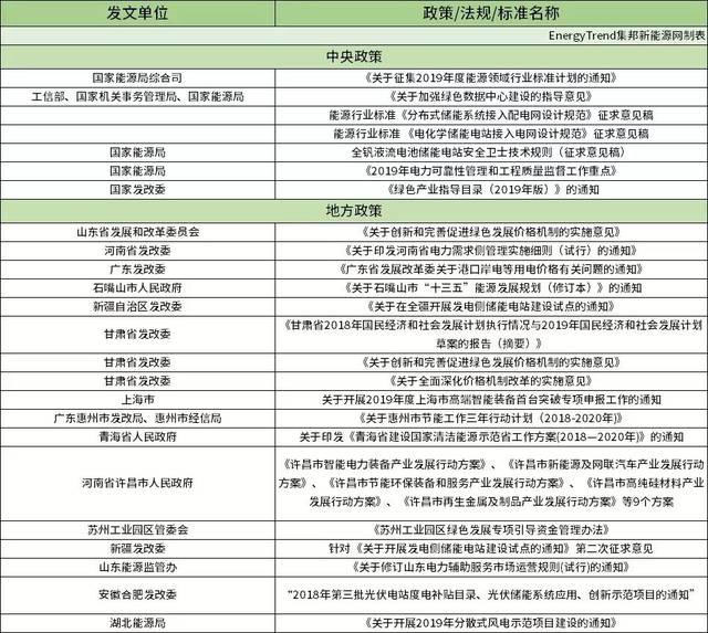 1月,國(guó)家能源局綜合司發(fā)布《關(guān)于征集2019年度能源領(lǐng)域行業(yè)標(biāo)準(zhǔn)計(jì)劃的通知》,該通知重點(diǎn)圍繞煤電油氣等常規(guī)能源、水能、風(fēng)能、太陽(yáng)能、生物質(zhì)能、地?zé)崮艿刃履茉醇翱稍偕茉础㈨?yè)巖氣、煤層氣(煤礦瓦斯)等非常規(guī)油氣及海洋油氣資源開發(fā)、煤炭深加工及梯級(jí)利用、儲(chǔ)能技術(shù)、能源互聯(lián)網(wǎng)、電動(dòng)汽車充電設(shè)施、船舶岸電、分布式能源、高效節(jié)能、新型裝備、軍民融合、農(nóng)村能源等標(biāo)準(zhǔn)項(xiàng)目進(jìn)行申報(bào)。