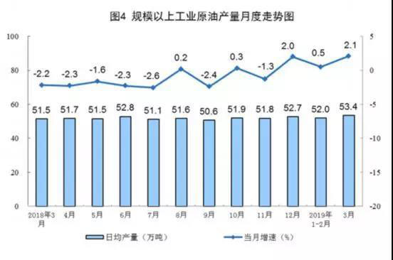3月份,生產(chǎn)原油1654萬噸,同比增長2.1%,增速比1—2月份加快1.6個百分點;日均產(chǎn)量53.4萬噸,比1—2月份日均增加1.4萬噸。1季度,生產(chǎn)原油4735萬噸,同比增長0.6%,去年同期下降2.0%,增速由負轉(zhuǎn)正。
