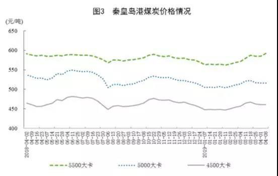 煤炭價格小幅上漲。與3月初相比,4月初秦皇島5500大卡煤炭綜合交易價格為每噸592元,上漲21元;5000大卡煤炭每噸516元,上漲2元;4500大卡煤炭每噸461元,上漲4元。