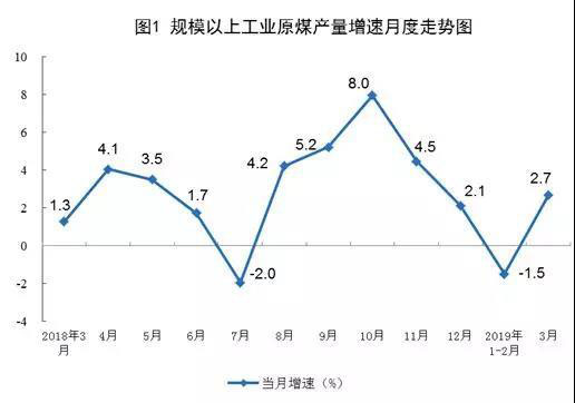 3月份,生產(chǎn)原煤3.0億噸,同比增長2.7%,1—2月份同比下降1.5%,增速由負轉(zhuǎn)正;日均產(chǎn)量962萬噸,比1—2月份日均增加91萬噸。1季度,生產(chǎn)原煤8.1億噸,同比增長0.4%,比去年同期回落3.5個百分點。