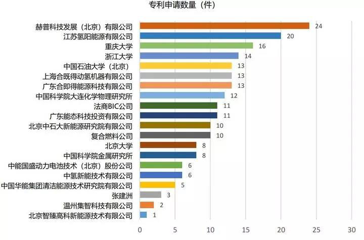 圖6 近年來(lái)氫燃料電池催化材料相關(guān)專利主要單位、企業(yè)申請(qǐng)數(shù)量