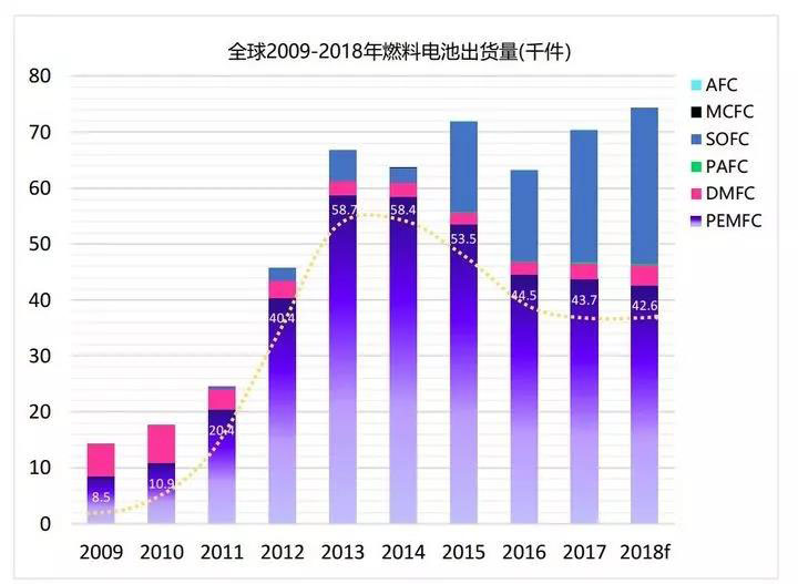 數(shù)據(jù)來(lái)源:Fuel Cell Today和E4tech (2018年為1-10月數(shù)據(jù))