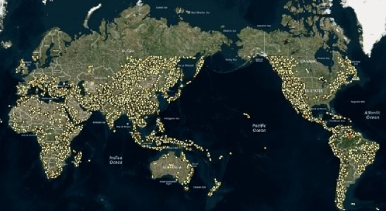 分布在世界各地的潛在徑流式抽水蓄能地點