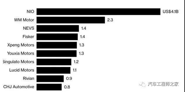 最近幾年來,全球范圍內都出現了大量的電動汽車制造商。BloombergNEF的數據顯示,自2011年以來,這些企業(yè)的融資總額達到了180億美元。而其中,絕大部分資本都流向了中國車企,例如蔚來、威馬、小鵬和游俠等。