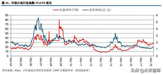 從華能國際和華電國際的近年P(guān)E估值情況來看,兩公司估值區(qū)間波動較大。由于我國火力發(fā)電企業(yè)受“市場煤計劃電”影響,其盈利能力受煤價影響呈現(xiàn)大幅波動,從而導(dǎo)致PE波動較大。在煤價較高的時間點(2008年、2011年、2017年等),兩公司的PE呈現(xiàn)不正常的上下波動,基本上不具備估值參考的意義。從這個角度來看,當(dāng)前我國火電尚未能完全體現(xiàn)出公用事業(yè)板塊的特點,更多的表現(xiàn)出逆周期的特質(zhì)。