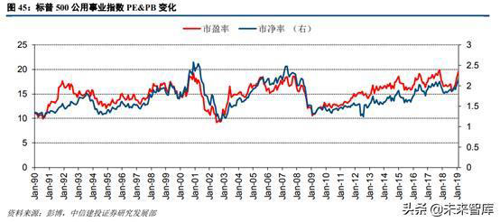 為了剔除公司層面偶然事件的影響,我們進(jìn)一步對比中美電力行業(yè)指數(shù)的估值情況。我們選擇標(biāo)普500的公用事業(yè)指數(shù)和中信火電行業(yè)指數(shù)進(jìn)行對比分析。從標(biāo)普500公用事業(yè)指數(shù)來看,其PE及PB波動幅度較為一致,說明此指數(shù)相應(yīng)的ROE也較為穩(wěn)定,基本上在8%—10%之間。2015年后指數(shù)的估值中樞有所上移,PE及PB的中位數(shù)分別為17.26倍和1.89倍。