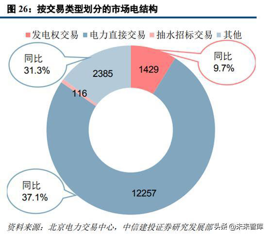 根據(jù)中電聯(lián)數(shù)據(jù)顯示,2018年全國電力市場交易電量(含發(fā)電權(quán)交易電量、不含抽水蓄能低谷抽水交易電量等特殊交易電量)合計為20654億千瓦時,同比增長26.5%,市場交易電量占全社會用電量(即全社會用電量市場化率)比重為30.2%,較上年提高4.3個百分點;市場交易電量占電網(wǎng)企業(yè)銷售電量比重為37.1%。