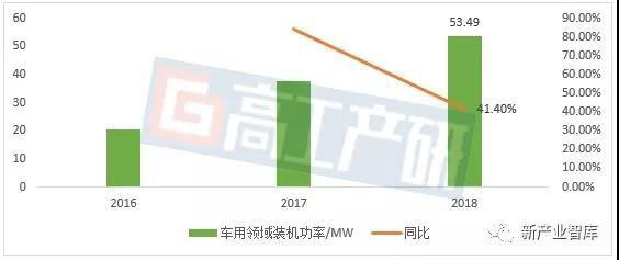 高工產(chǎn)研氫電研究所(GGII)數(shù)據(jù)顯示,2018年中國(guó)氫燃料電池在車(chē)用領(lǐng)域的裝機(jī)功率為53.49MW,同比增長(zhǎng)41.40%。