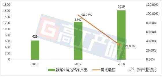 2018年中國(guó)氫燃料電池汽車(chē)產(chǎn)量1619輛,其中專(zhuān)用車(chē)909輛,客車(chē)710輛。相較于2017年,中國(guó)氫燃料電池汽車(chē)產(chǎn)量同比增長(zhǎng)29.83%。